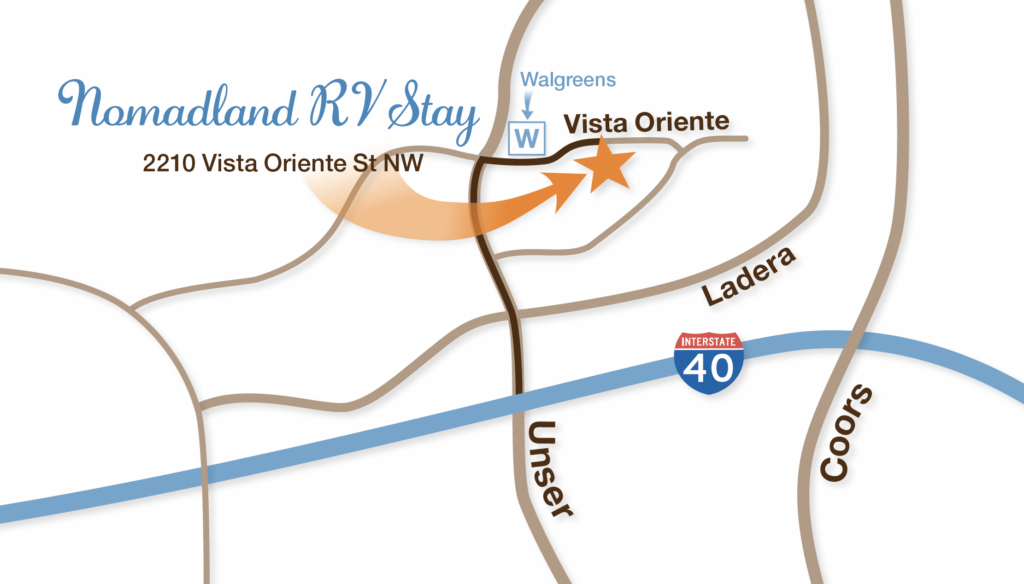 Located within an upscale RV and Boat Storage facility on the west side of Albuquerque, right off of Interstate-40, Nomadland RV Stay is a gated, clean, and conveniently located facility with 50-amp full hookup spaces, reliable WiFi, countless amenities, and friendly staff!